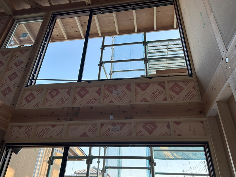 大きなサッシも入りました。 吹抜け上のガラス入れが大変そうですね( ;∀;)