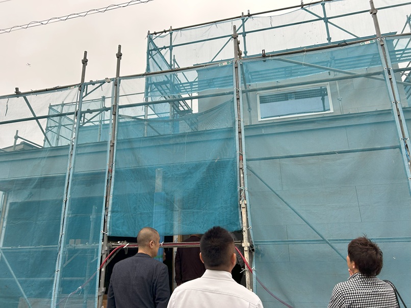 24日は、現場見学をさせて頂きました。まずは、現場途中の家です。 外壁は、塗り壁のようです。