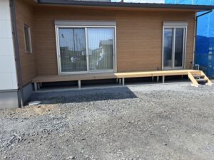 こちらは、モデルのお隣のO様宅です。 デッキ工事が完了しました。 カメラマン「ヌッキー」いい感じで写っています!