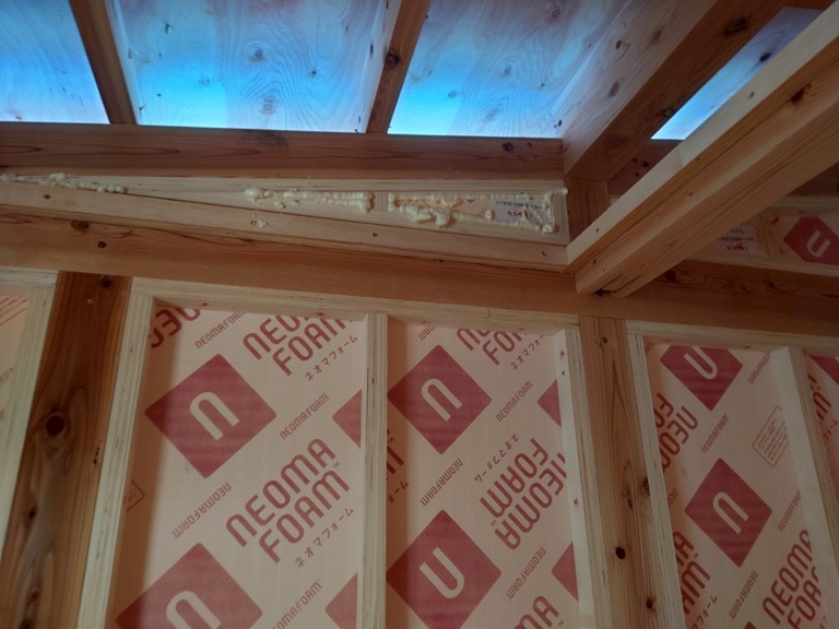 「タツミー」の方は、下から勾配に張れない部分は、水平にQ1ボードを貼ります~その後でネオマフォーム90mmを打ちます。