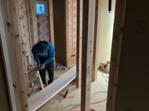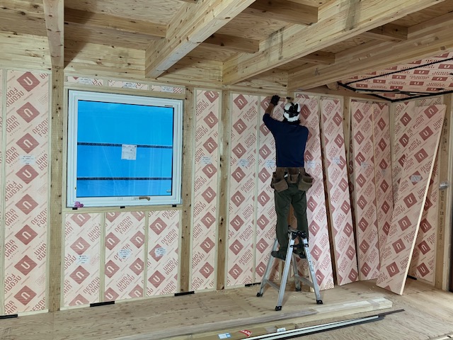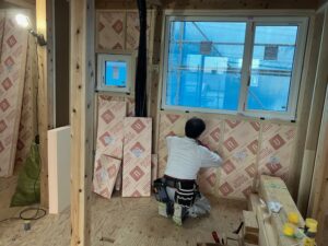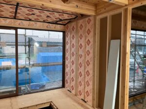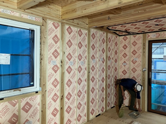 午後は、雨になってしましましたが室内の断熱工事を行いました。