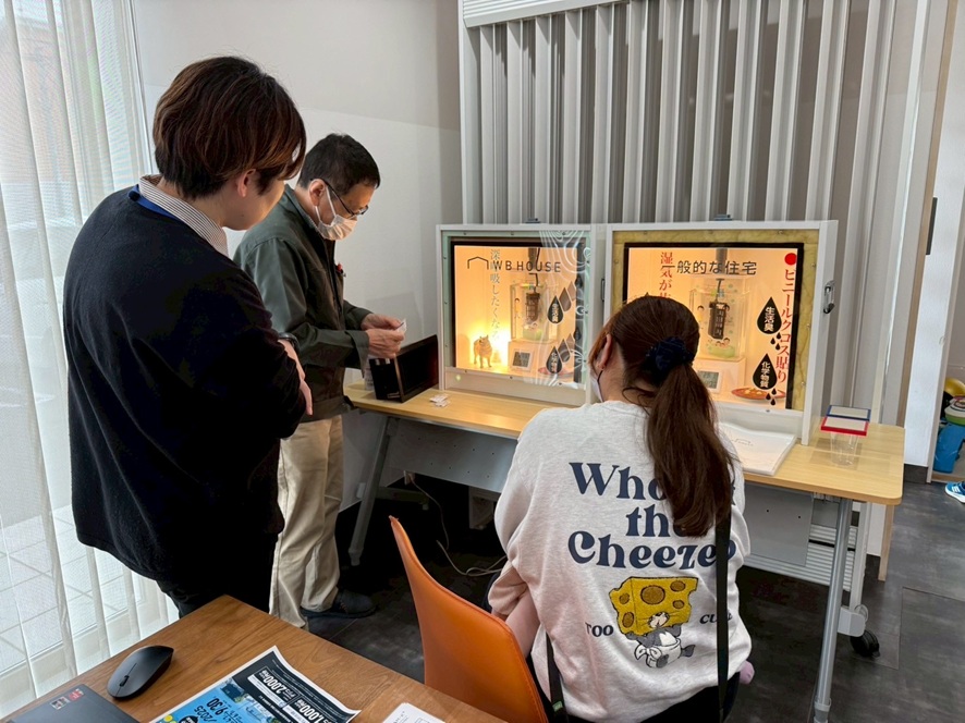標準仕様+WB工法の内容+無垢床(標準)+ターミダンシート(標準)の説明のブースになります。