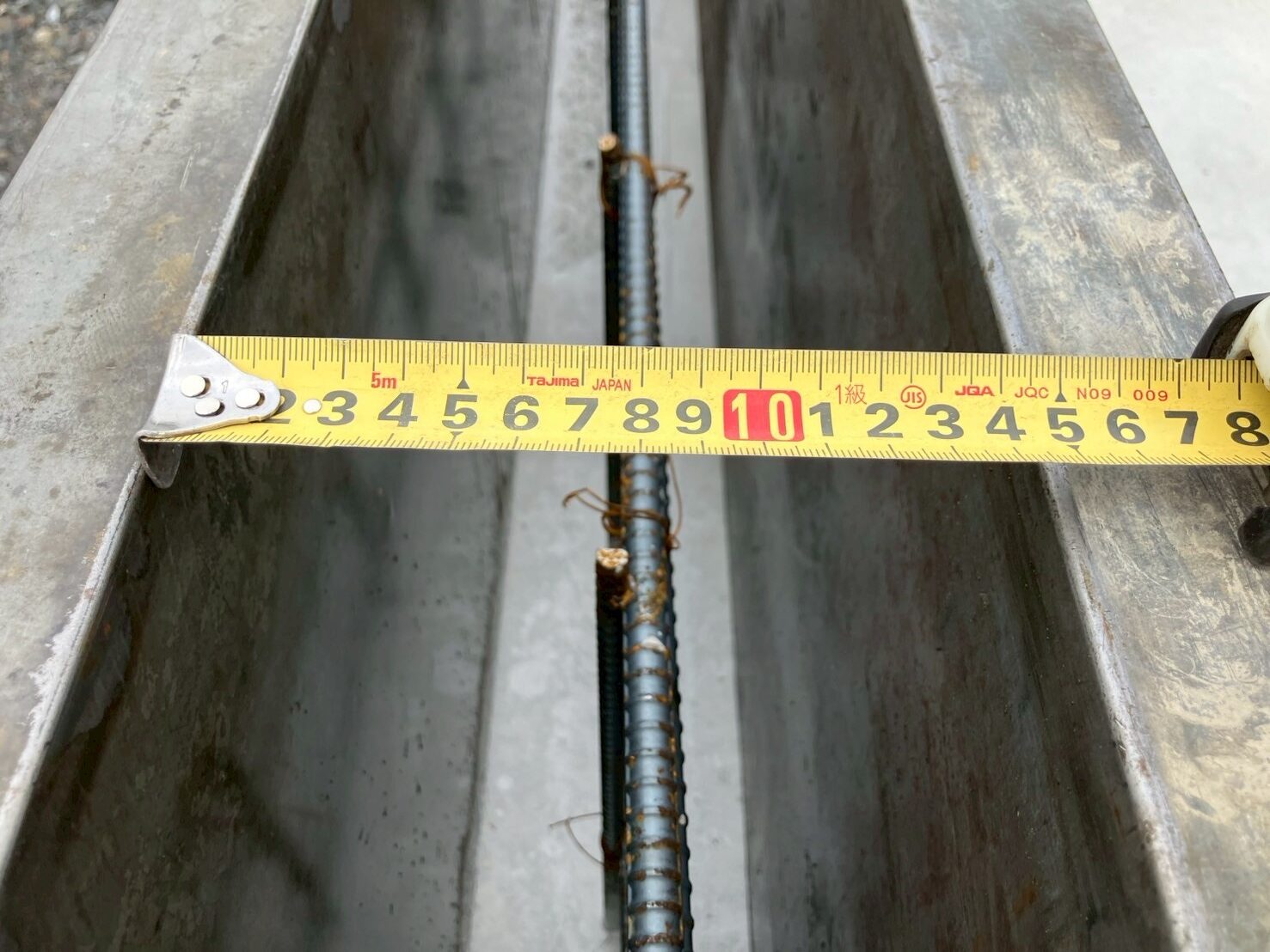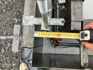 鉄筋の芯の追い出し場所の確認です。 横筋の左を芯にしてアンカーボルトが芯に近づける工夫をしています。