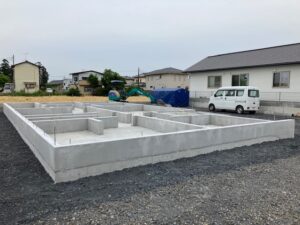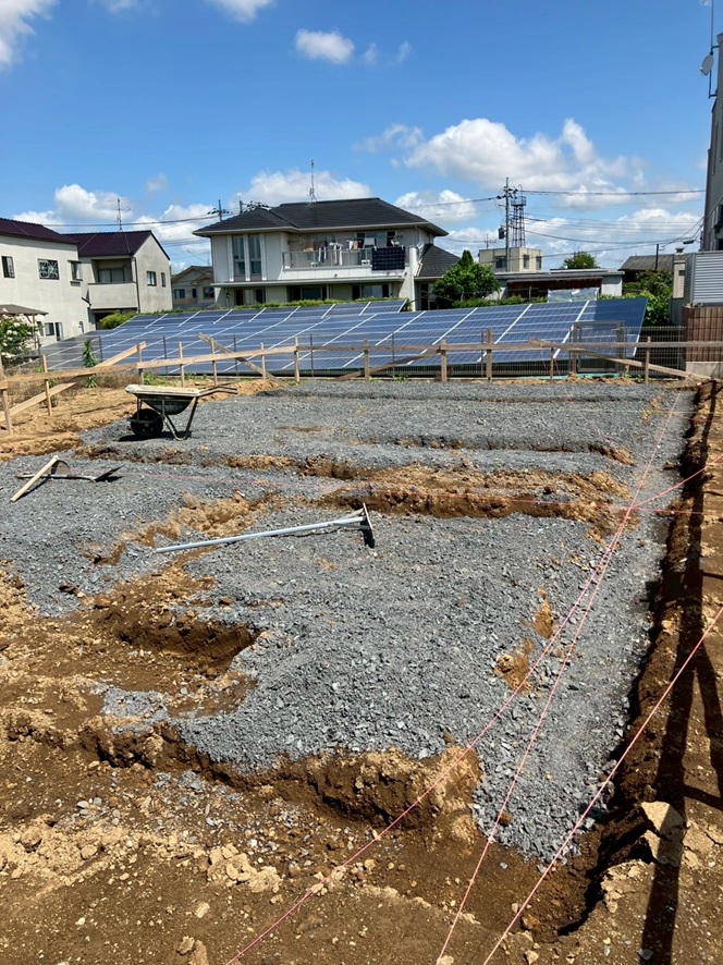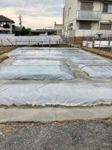 今日も雨になりました。 2025年5月31日 最終更新日時 : 2025年5月31日 team-K風間 今日も悪いお天気になりました。昨日より悪いお天気になってしまいました。 今日は、今週進みました基礎工事を報告をします。 並木町のT様邸基礎工事完了しました。 基礎工事完了後に玄関の荒打ちも下地を行い タイル下地コンクリート打ちました(^^♪ こちらは、寺中町のK様邸です。 根切工事~下地砂利敷はじまりました。 ターミダンシートを敷いて、捨コンまで終わっています。 これから鉄筋工事がはじまります。 楽しみですね(^^♪