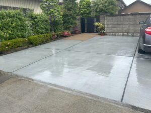 今日は、朝の内外構工事の確認で赤坂町のI様宅に訪問してきました。 入り口までのコンクリート工事いい感じで仕上がりました。(^^♪