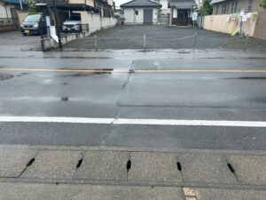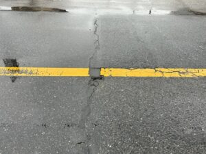 実はよく見ると センターラインの黄色の部分(道路に大きなひびも入っています)