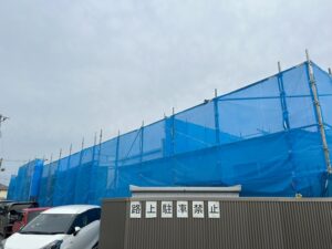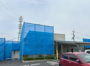 北面もこのように足場がかかってします。工事中ご迷惑をおかけしますがよろしくお願い致します。m(__)m