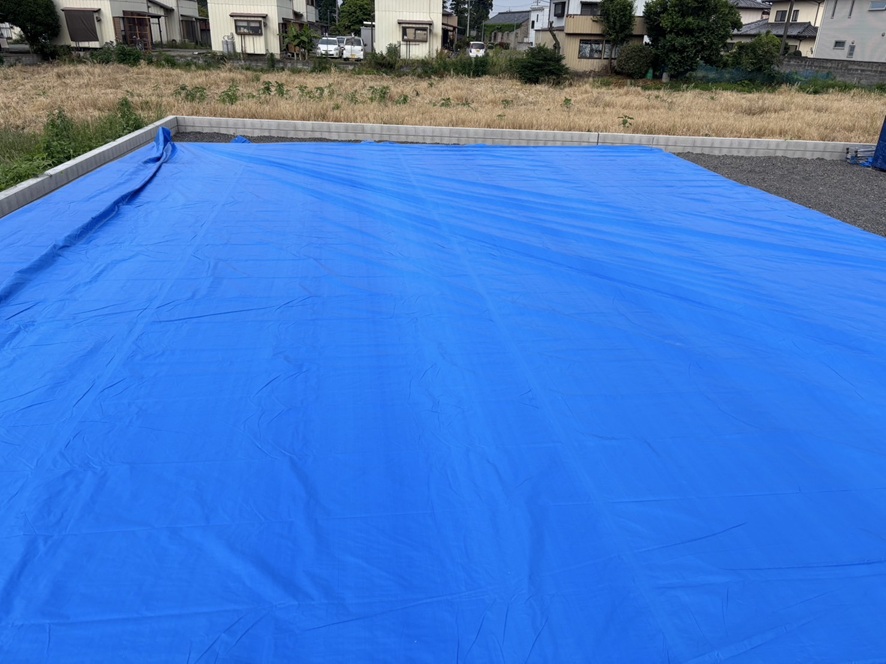 最後の最後にシート養生で昨日土台敷完了しました。 12日が建て方になります。