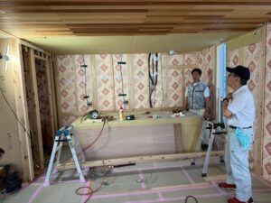 キッチン部分に「タツミー」が段取りしていました。 暑い中ご苦労様です。