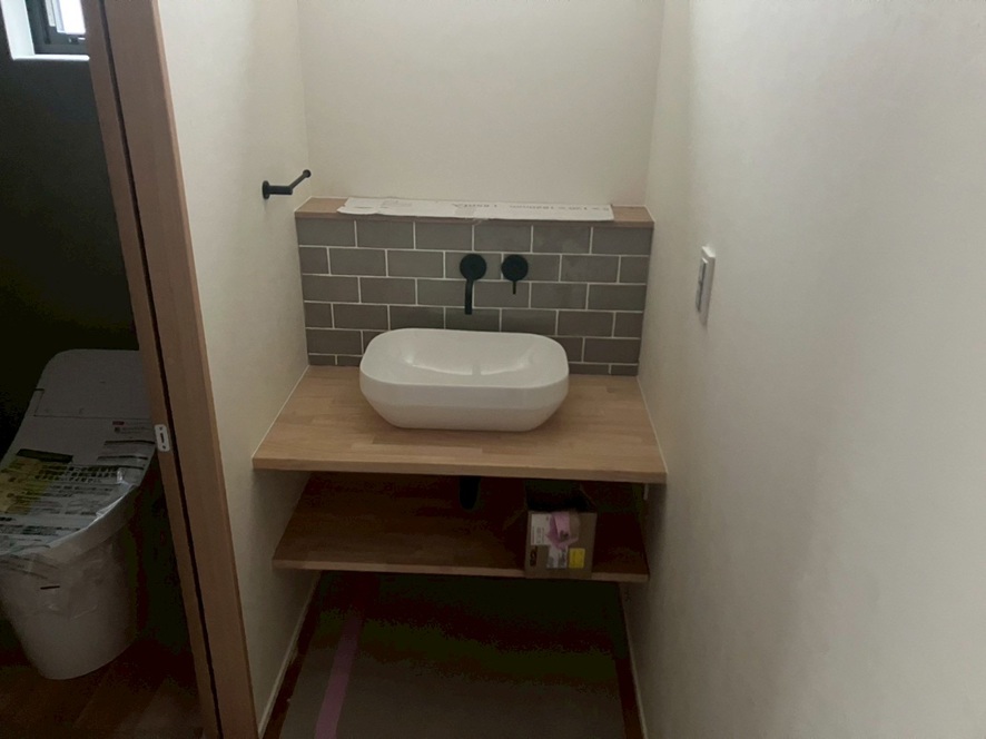 トイレ横の造作洗面です。 いい感じですね~ところどころにこだわり部分があります。