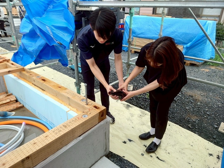 K様には、お仕事に行く前に朝のお清めをして頂きました。 おかげ様で無事ケガもなく建て方完了できました。
