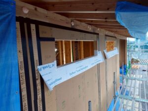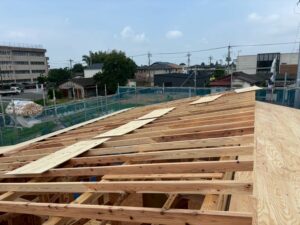 前回の野地の写真報告から・・・ タルキを打ち~野地を張りはじめた写真です。