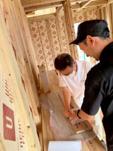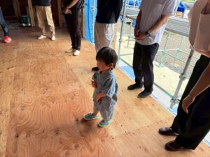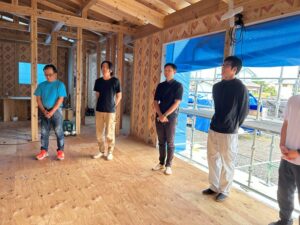 拝礼~乾杯を行ない~自己紹介をしているところです。 担当大工は、「アキラー」社員大工長が責任をもって対応します。