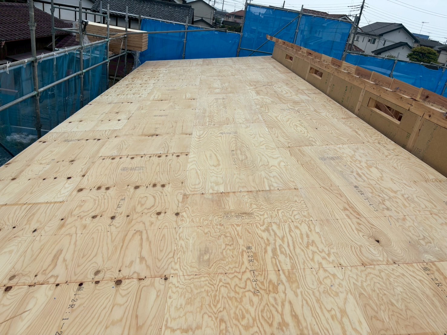 前回の野地の写真報告から・・・ タルキを打ち~野地を張りはじめた写真です。
