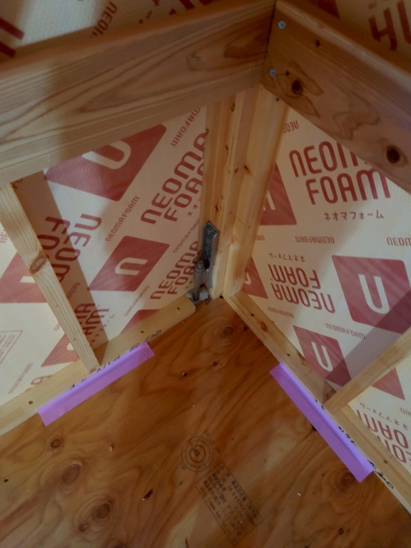 真壁パネル工法でのホールダウン金物は、はじめから金物が打てるようカットされ搬入さてます。(段取り8分ですね)