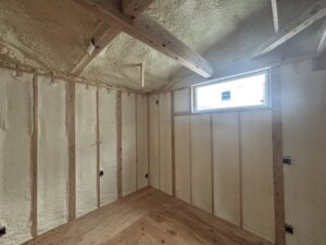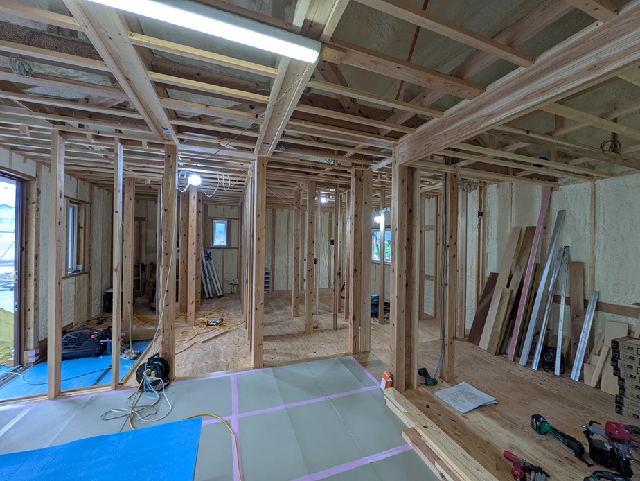 昨日ウレタン工事が完了しました。 順調ですね(^^♪ 明日お天気により変更あるかもしれませんが気密測定をする予定です。