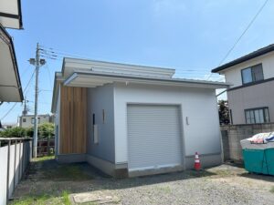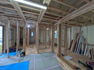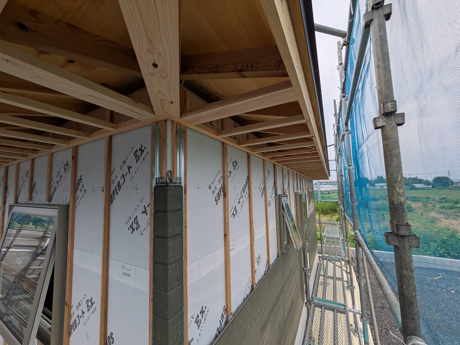 こちらは、寺中町のK様邸です。外壁の下地、軒天下地完了しています。