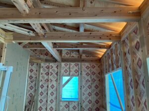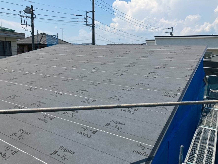 屋根のルーフィング工事が完了して、防水検査も終わりました。