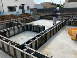 こちらは、堀米町のM様邸です。立ち上がりの枠の検査が終わりました。