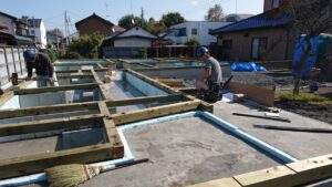 順調に土台敷を終了でき養生までバッチリです!
