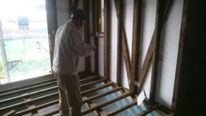 床の下張りもはじめています。順調ですね。(^^♪