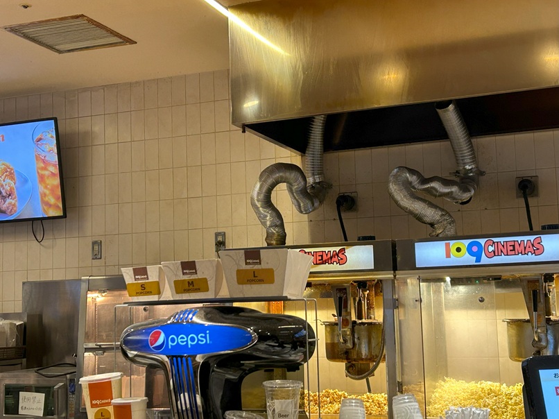 映画館の売店では、ポップコーンの配管のダクトがやけに曲がっていたのが気になりました!(職業病ですかね~)