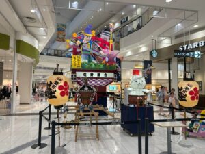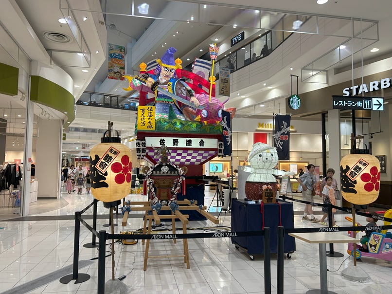 その後、イオンに寄り~「睦会」の神輿(ねぶた)が展示してありました。今年は10月にお祭りがありますが、以前は、7月の暑い中