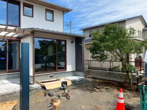 今日も暑くなりました。 植下モデル外構進んでいます。