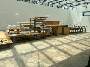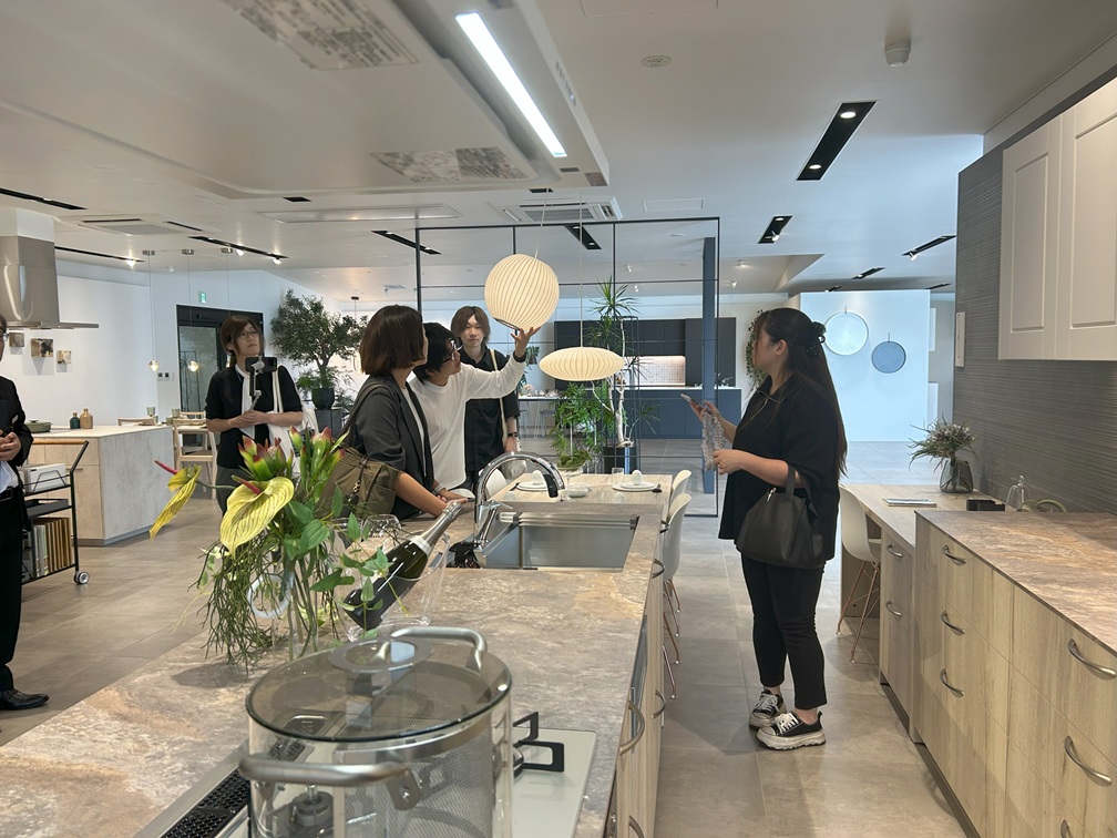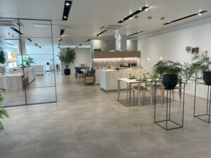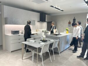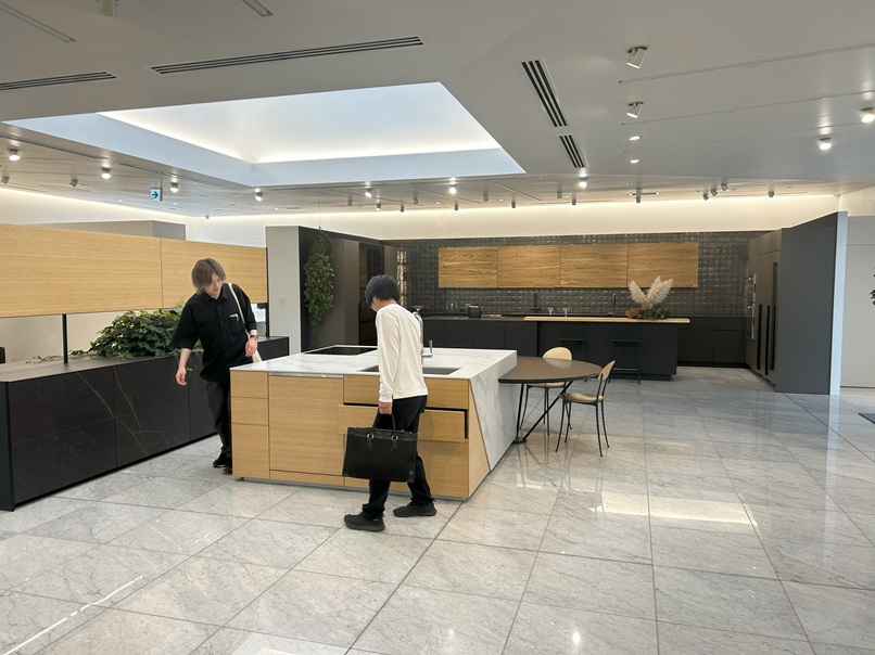ショールーム内は、こんな雰囲気で沢山のキッチンが展示してあります。 グラフテクトのキッチンになります(キッチンハウスは、別の棟に)