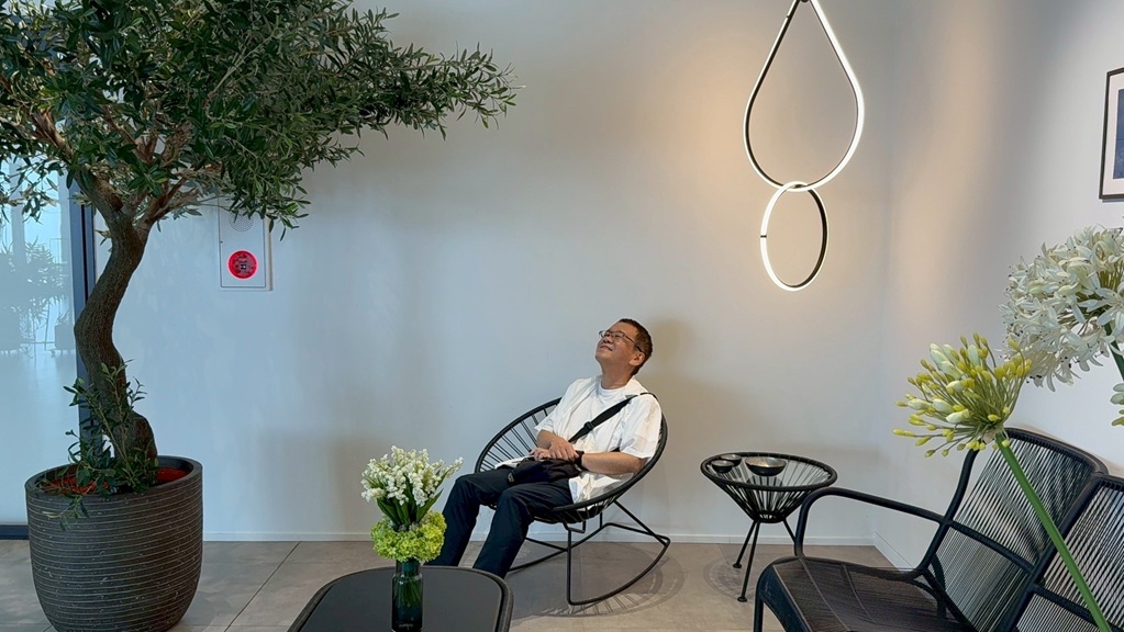 グラフテクトブースの中で揺れる椅子があるので少しくつろぎました"(-""-)"