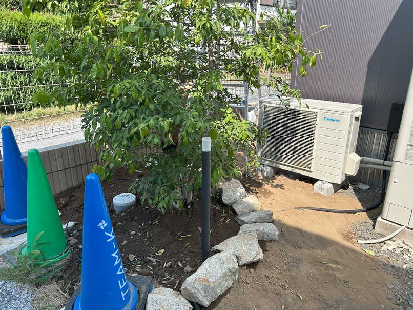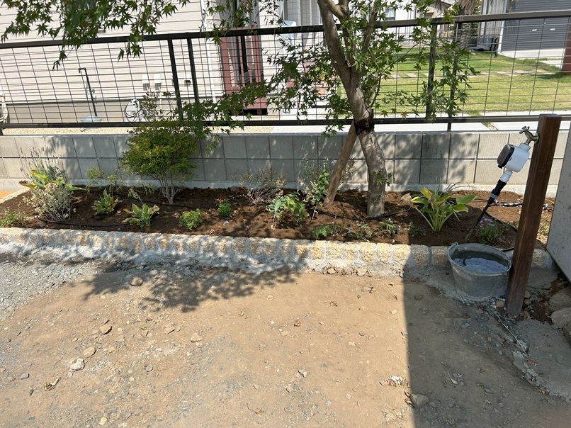 東の植栽です。自動水巻器が作動していい感じで土が湿っていました。