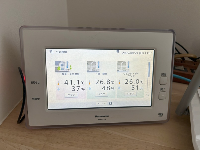今日のスキップモデルの温度です。外気温41.1℃ 1階26.8℃ 2階26.0℃でした。
