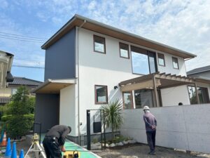 今日は、植下モデルの外構工事に朝にうち立ち合いました。 玄関ポーチのスロープと、塀の間の土間工事の段取りをしています