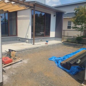 植栽の手前も人工芝を敷く予定ですのでその下地の段取りもあります。 外構の「セヤマ」さんと打合せをしました