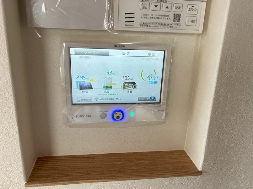 今日は、太陽光の発電を朝の内確認しました。7.48kwの太陽光が付いてますが、朝の内ですので2.45kw発電