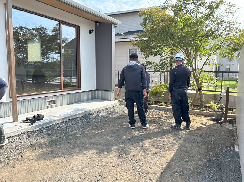 植栽の手前も人工芝を敷く予定ですのでその下地の段取りもあります。 外構の「セヤマ」さんと打合せをしました