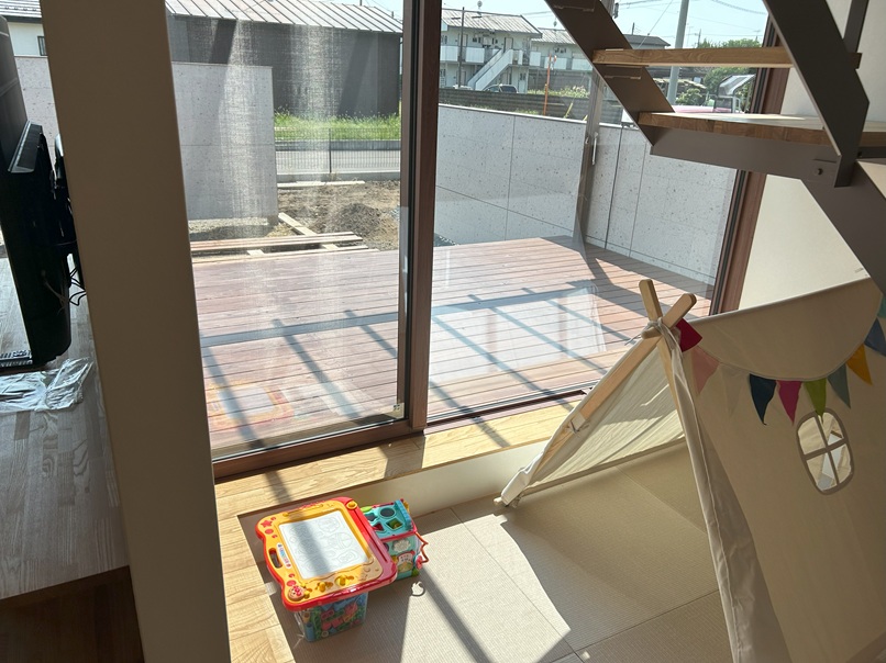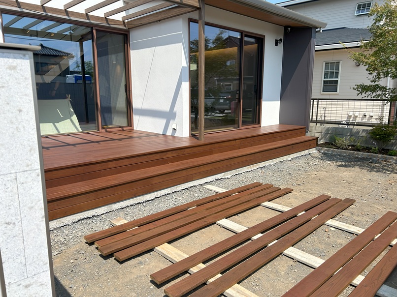 今日は、午前中からT様オフィスでの打合せありがとうございました。m(__)m その足で植下モデル見学もありがとうございます。 自分もあとから参加させてもらいました。 昨日ウッドデッキの塗装をしました。