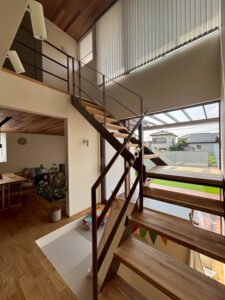 今日も暑くなりました。植下モデルブラインド付きました。 2025年9月9日 最終更新日時 : 2025年9月9日 team-K風間 今日も暑くなりました。 2件の現場報告します。 こちらは、栃木市のS様邸です。 外壁も進み あとは、破風と樋で足場解体できそうですね! このボードが終わりますと、内装工事の出番です。 こちらは、植下モデルです。追加のロールカーテン寝室に入りました。(^^♪ 階段吹き抜けのブランドも付きました。下は、パーゴラで日射遮蔽は、対応します。 リビングにもついて落ち着ける感がでてきました(^^♪ 植下モデルは、計画的に見学会を続けていきますのでお問い合わせお待ちしております。m(__)m
