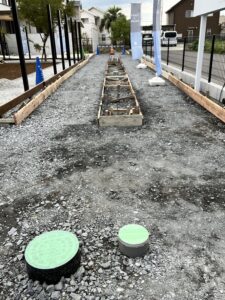 今日は、外構屋さんコンクリート下地の段取りを行いました。