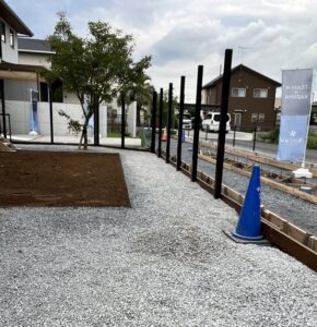 こちらは、昨日の植下モデルです。社員大工「アキラー」ウッドフェンスの根がらみの木を取り付けました。