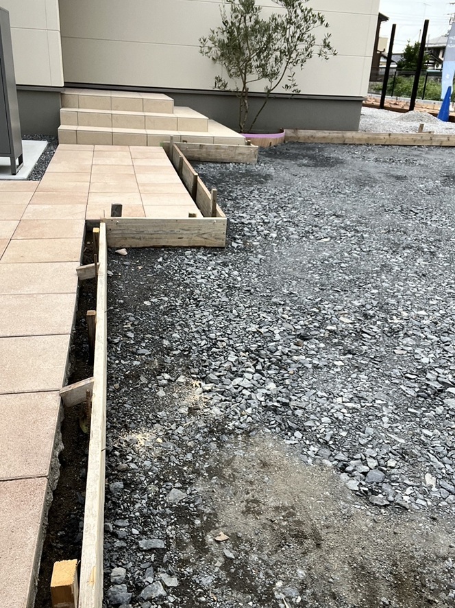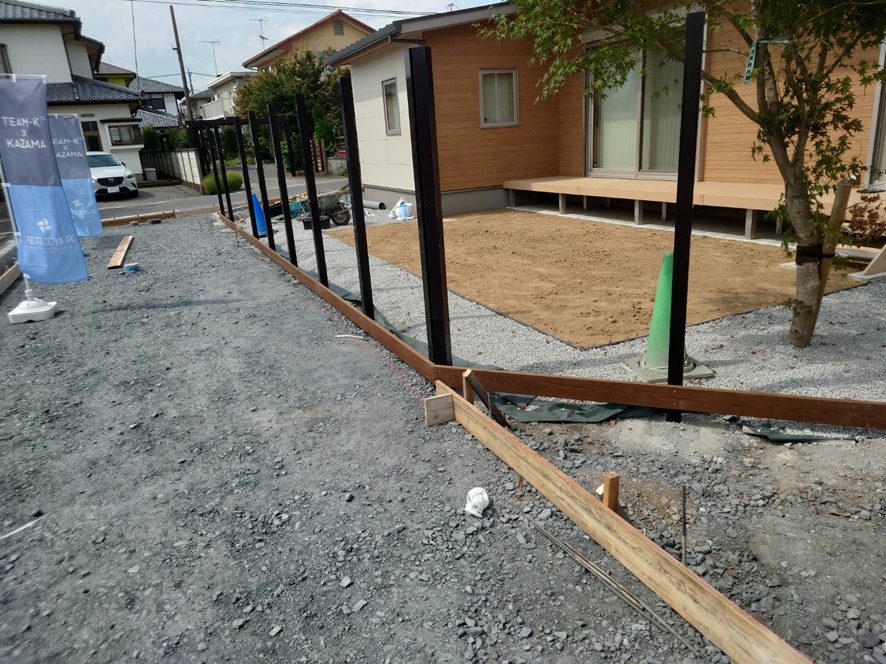 今日は、外構屋さんコンクリート下地の段取りを行いました。