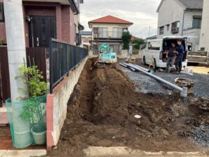 こちらは、新規プロジェクトで前回地鎮祭をしました小山もK様邸です。 先行配管がはじまりました。