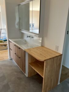 洗面化粧台の横の棚もつきました。