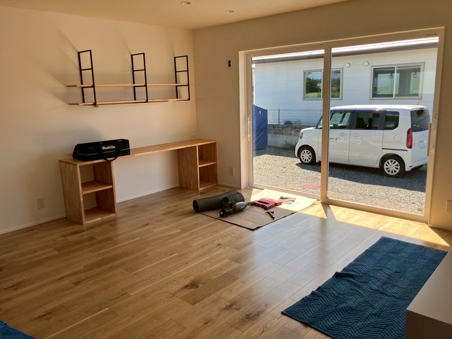 室内は、棚等もついていい雰囲気になってきました。(^^♪