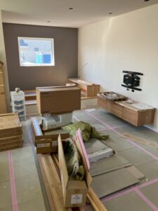 壁掛けTVの金物も付いてその他の器具付けが完了しますと、完成するところまで来ていますね(^^♪