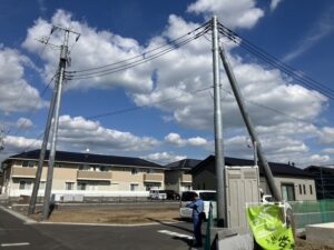 こちらは、足利市の現調段階の現場です。 電柱の移動の件で東電さんと「アッキー」監督が立ち合いを行いました。