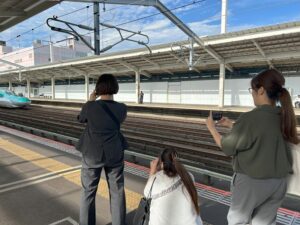 朝小山駅集合で新幹線で東京~品川まで行きます。 新幹線をとる3人のスタッフを撮りました( ゚Д゚)