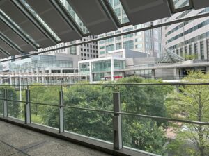 品川駅~YKKのショールームに行く途中は、ビルとビルの間に庭(通路)もあり環境のいいところを横にしてYKKショールームに到着しました。