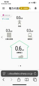 電気代0の状態です。 このような感じで家でも見られますので今後データを集めたいとおもいます。