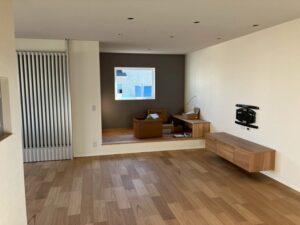 室内は、これから内装工事に入ります。 和室の間仕切りは、ロールスクリーンが天井から付きます。(埋め込み)